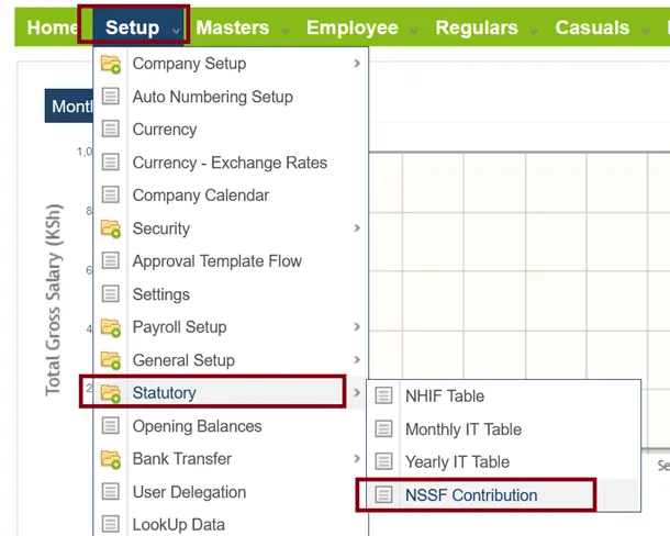 - Click Setup >> Statutory >> NSSF Contribution
